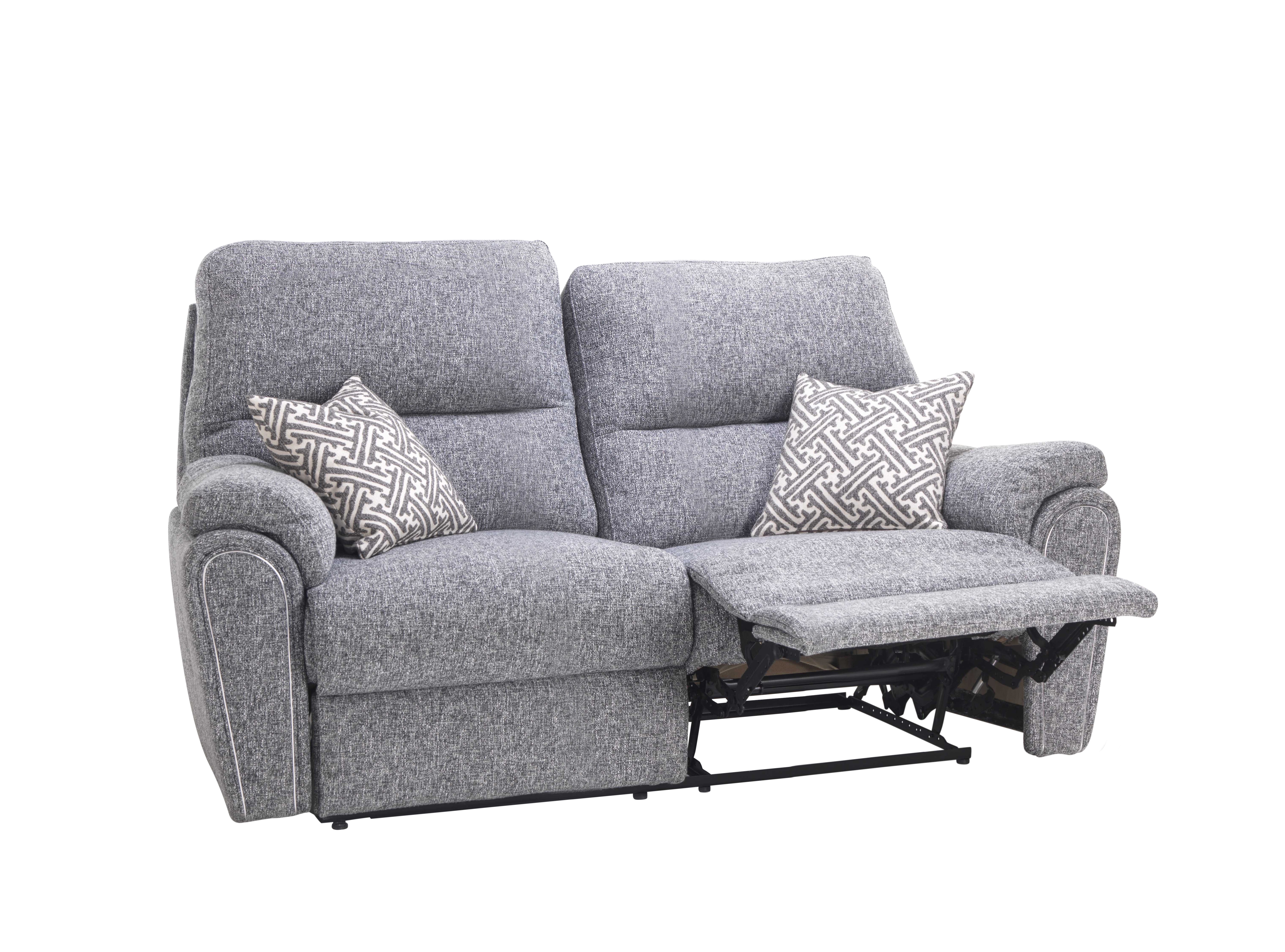 The Malham Reclining Sofa Collection combines modern style with exceptional comfort, featuring soft grey textured upholstery, smooth reclining functionality, and generously padded cushions for the perfect place to relax. With supportive high backs, plush armrests, and coordinating patterned accent cushions, this durable and versatile collection brings effortless comfort and contemporary elegance to any living space.
